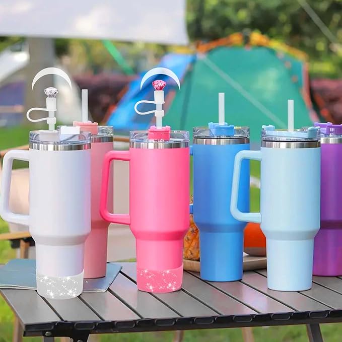 - [COMPLETE MUG SET]:The accessory set is very well matched for stanley mugs. The silicone leak-proof stopper features a 360° leak-proof design, the diamond straw lid is compatible with 9-11mm diameter straws, and the bottom protector protects the cup from impacts, scratches, slips, and prolongs the life of the cup. This set can meet your needs of protecting and dressing up your cups