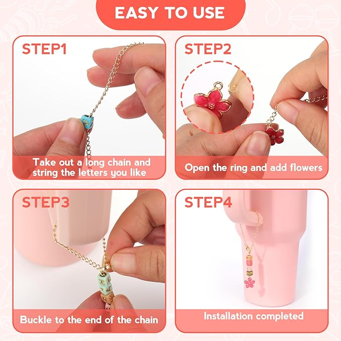 - Sufficient Quantity: Compared with the ordinary packaging, this for stanley cup charms set has double the quantity, equipped with 4 charm chains and 4 packs of letter beads. Various options are provided to create different designs and spell out different names or phrases. Meet your unlimited DIY needs