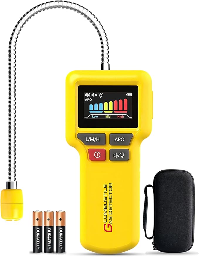 - COMBUSTIBLE GAS LEAK DETECTOR WITH LED LIGHT: Aprvtio ALD-30 Gas Detector could quickly and accurately detect gas leaks from hard-to-reach areas for methane, propane, natural gas, LPG, etc. The portable gas sniffer with an illuminable flexible probe that allows you to easily detect hard-to-reach or dimly lit areas.