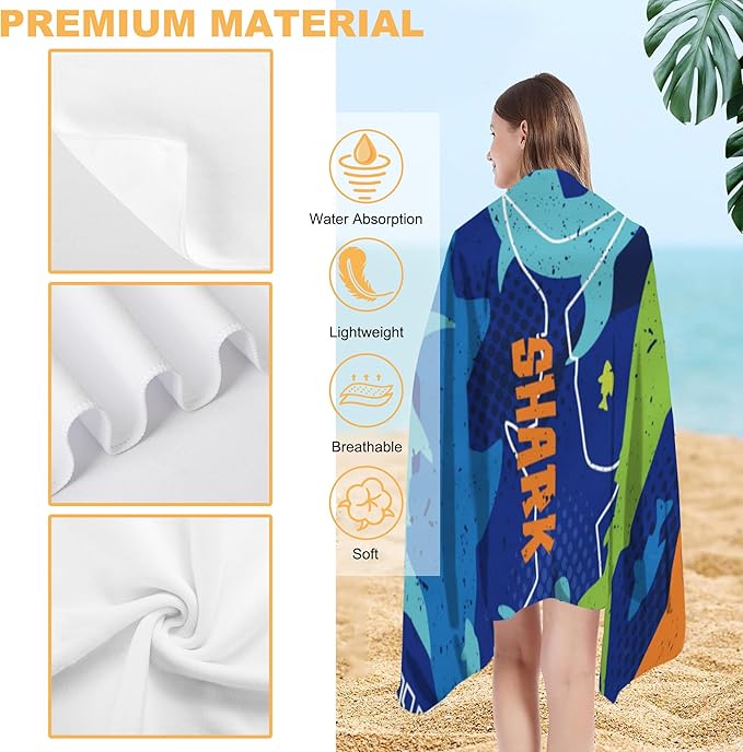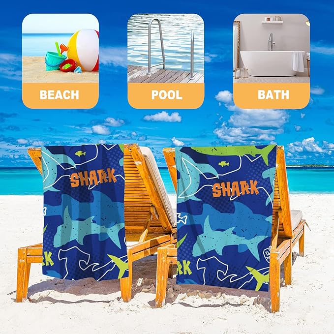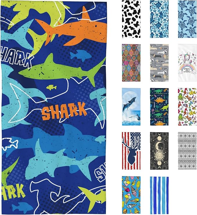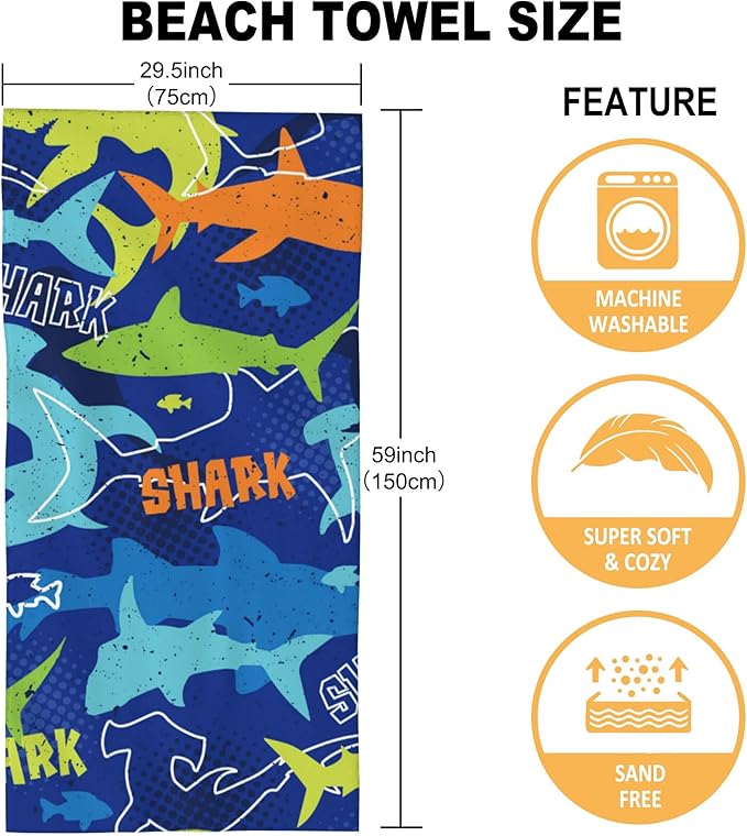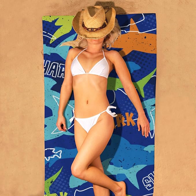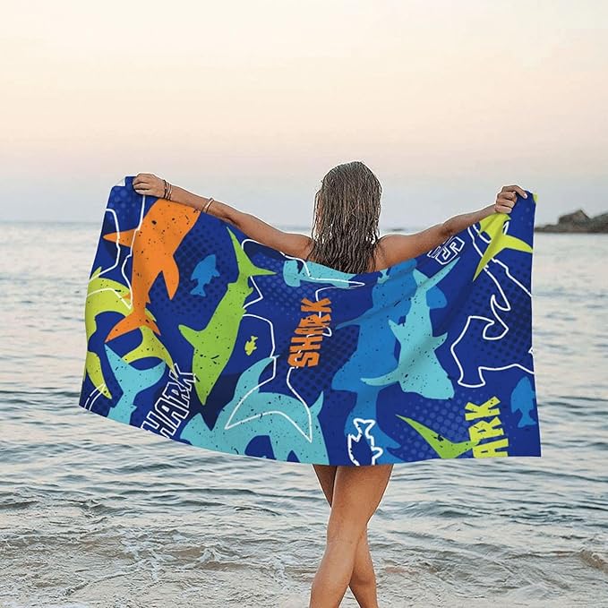 Microfiber Beach Towel, Colorful Sharks Beach Towels for Women Men, Extra Large 29.5” X 59”, Quick Drying Lightweight Sand Free Bath Swim Towel