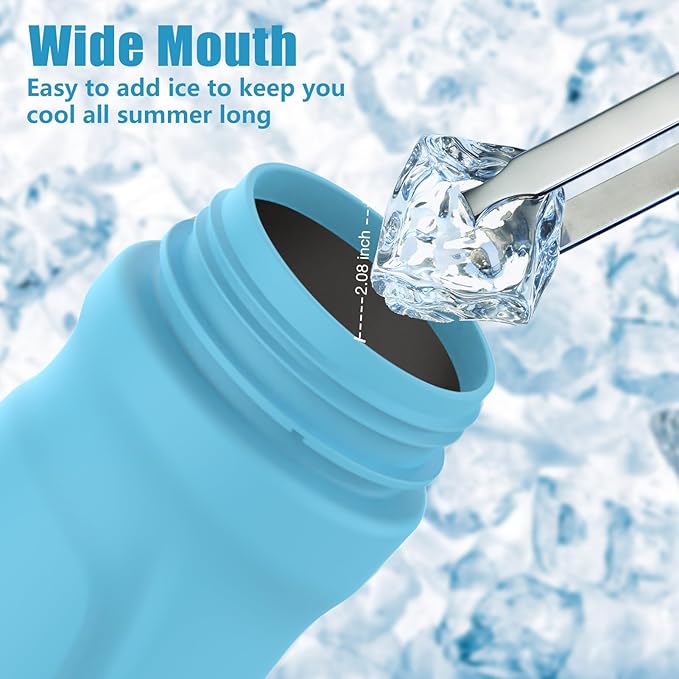 - 【Wide Mouth Design】Ice and water fill-ups are a cinch with our wide mouth insulated water bottle, no spills or mess. And cleaning? Effortless! Reach every corner with ease using a sponge or brush, bidding farewell to the struggle of cramming ice cubes into narrow openings.