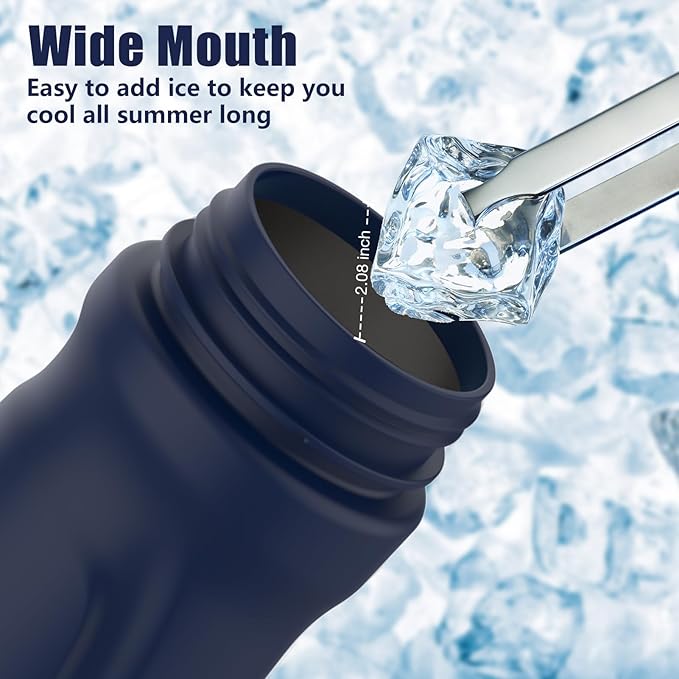 - 【Wide Mouth Design】Ice and water fill-ups are a cinch with our wide mouth insulated water bottle, no spills or mess. And cleaning? Effortless! Reach every corner with ease using a sponge or brush, bidding farewell to the struggle of cramming ice cubes into narrow openings.