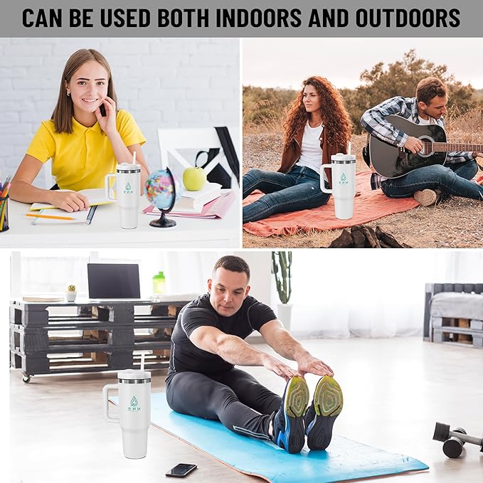 40oz stainless Steel Insulated Tumbler with Handle, lid and straw for cold water, Iced tea, or coffee - 100% Leak-Proof - Cupholder Friendly Travel Mug- Gifts for Women Men Him Her (white)