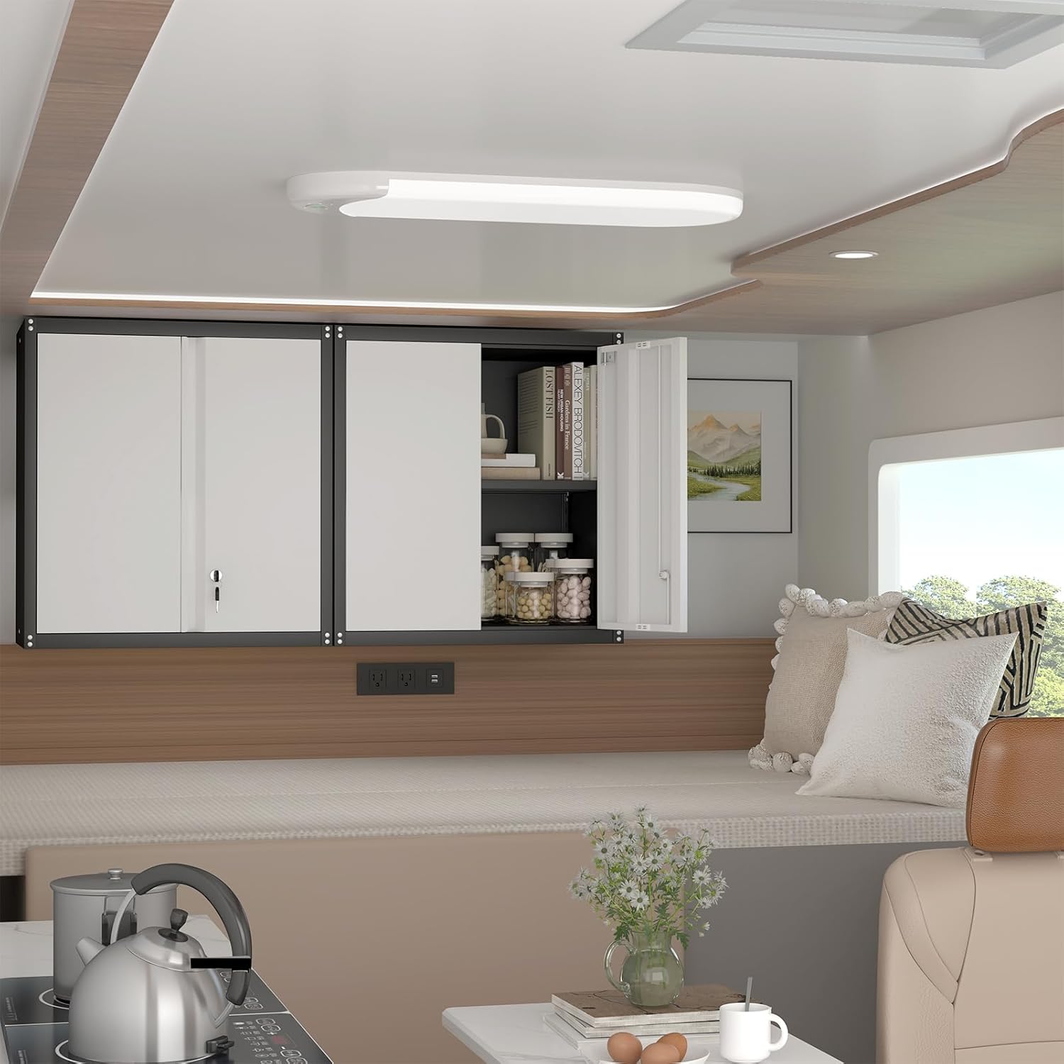 - 【Multipurpose Uses】Hanging locking cabinets are suitable for garages, living rooms, warehouses and other places to store heavy tools, books, magazines and other items. Its wall-mounted design can also be used as a partition to divide different space areas.