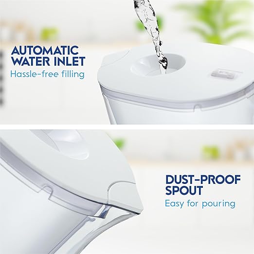 - INNOVATIVE SAFETY FEATURES :The spout lid's innovative design prevents dust and particles from entering the pitcher, ensuring cleaner water. Refilling the OnlyPure pitcher is effortless, thanks to its lid that does not require removal.