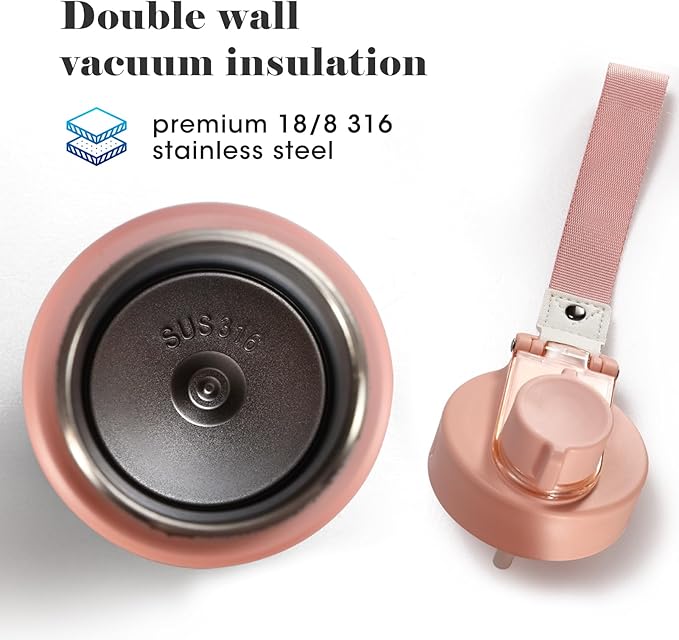 - 【Upgraded material - 316 stainless steel】316 stainless steel is further upgraded on the basis of 18/8 (304) stainless steel (controlling the proportion of impurities, adding molybdenum), corrosion prevention, acid and alkali resistance, high temperature resistance is stronger than 18/8 (304), therefore: all kinds of strong acid and alkali drinks (cola, coffee), this stainless steel water bottle can withstand. 316 stainless steel can better adapt to the environment where the temperature is too high or low, and it will not affect its corrosion resistance. Therefore: it is durable and will never leave a metallic taste or rust.