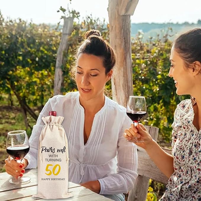 Funny Birthday Wine Bag Gifts - 50th Birthday Gifts 50th Birthday Gift Ideas for Women Men Birthday Gift Red Wine Bag Birthday Party Decor Drawstring Burlap Wine Bottle Bag