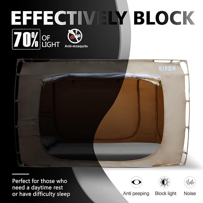 - Blackout Technology: When you close the bed tent's zipper, lying in the dark tent space, blackout 70% allows you to hallowing you to enjoy a more pure sleep in the night until dawn