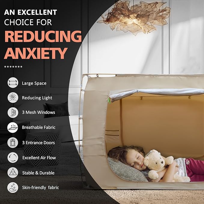 Bed Tent Bed Canopy Bunk Twin Size Tents for Adult and Kids- Portable Dream Tent Indoor Sleeping Tents 70% Blackout with 3 Doors Breathable Big Space Tents