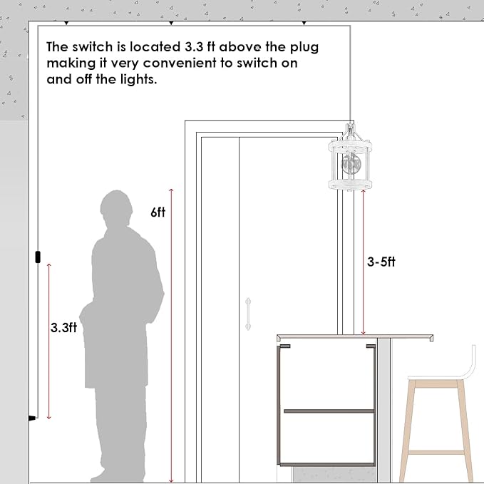 - 【Size&compatible Bulb】Lamp body size H10.6 "x D6.7" Wire 59 "Adjustable height, kitchen island lighting requires 1 E26 neutral incandescent lamp, led or cfl bulb, which can be fully dimmed when used with dimmable bulb and compatible dimming switch. (THE BULB IS NOT INCLUDED)