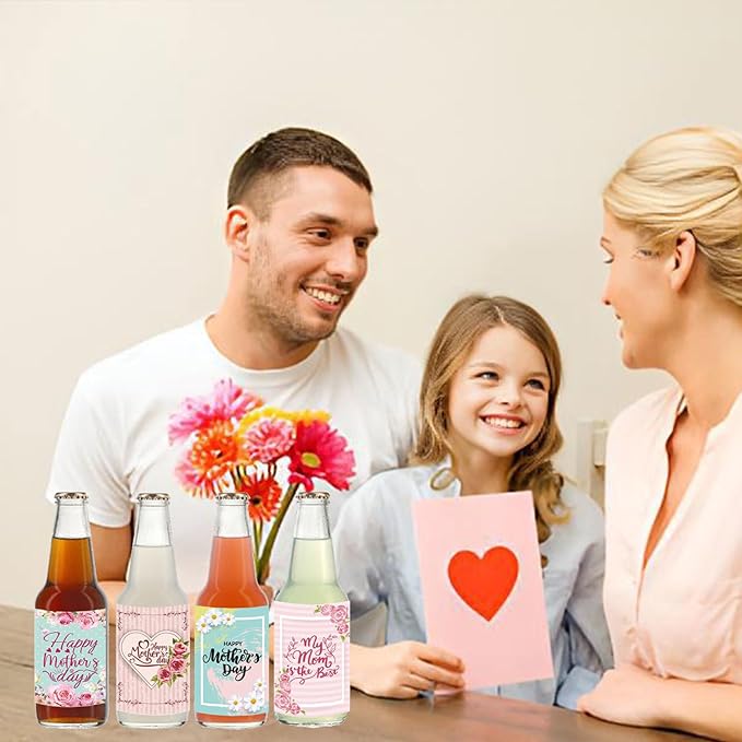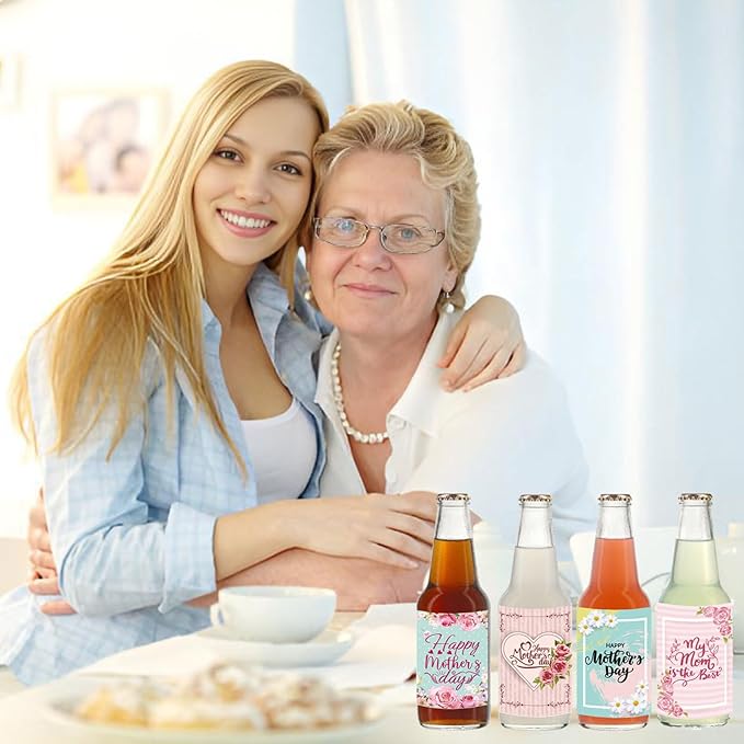 24pcs Mothers Day Wine Bottle Labels Stickers Party Wine Bottle Stickers Decorations Wine Bottle Cover Labels Happy Mothers Day Party Supplies