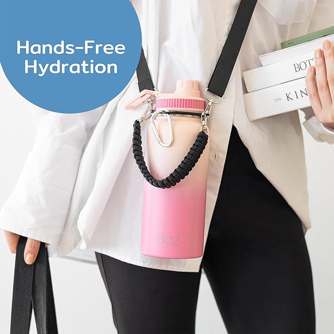 - ✅ COMPLETE CARRYING SOLUTION: Upgrade your 32oz bottle with the BOZ Water Bottle Strap Kit, which includes a paracord handle, silicone boot, and adjustable shoulder strap. This kit provides everything you need for convenient and secure bottle carrying.