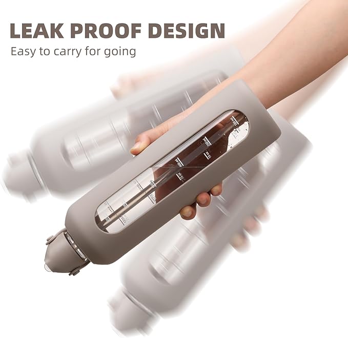 - 【HUMANIZED DESIGN DETAILS】The 32 oz glass water bottle featured with straw lid with premium handle lid, 100% leak-proof.The motivational 1 Liter glass bottles have two ways to drink water by a high quality straw and drink directly after remove the lid, which is very convenient and fast,and it also conveniently fits in cup holders.