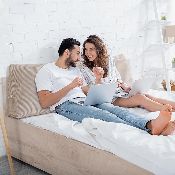 - ERGONOMICALLY DESIGNED WEDGE PILLOW-HIGOGOGO headboard pillow is ergonomically designed to support the natural curvature of the back and provide optimal elevation for the upper body. It can reduce your back and shoulder stress and provide proper support while you are reading and resting