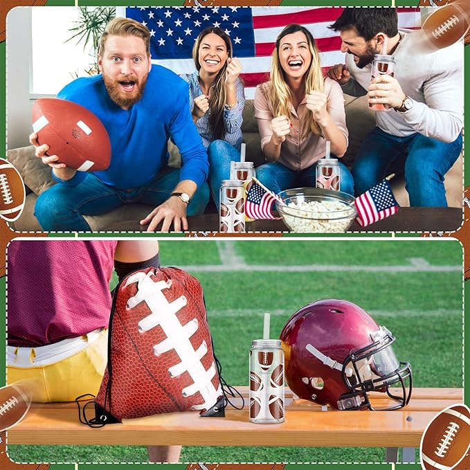 - Suitable Sizes: our football cups are designed with an approximate size of 14.2 oz/ 420 ml in capacity, 2.36 inches/ 6 cm in diameter and 6.1 inches/ 15.5 cm in height, including a 9.06 inches/ 23 cm straw; The drawstring bags provided have an ideal size of 12.6 x 16.93 inches/ 32 x 43 cm, making them spacious enough for the cups and more