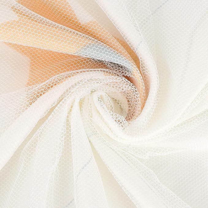 - Material: Inner layer is polyester cloth with cute printing, outer layer is beautiful soft white gauze. Cloth is of medium thickness, can black out approx 50% lights. Not too flimsy or not too thick, soft, breathable, and durable