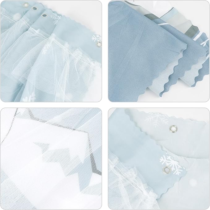 - Material: Inner layer is polyester cloth with cute printing, outer layer is beautiful soft white gauze. Cloth is of medium thickness, can black out approx 50% lights. Not too flimsy or not too thick, soft, breathable, and durable