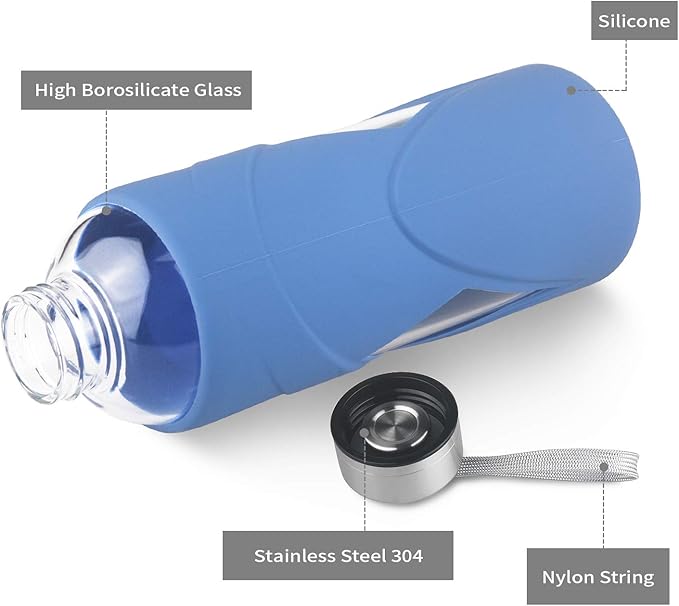 - 💗 STYLISH & PORTABLE: Take it everywhere! Our sleek design makes the glass water bottle has an ideal travel body and elegant appearance. Soft neoprene sleeve with handle offers secure grip and helps protect against breakage.
