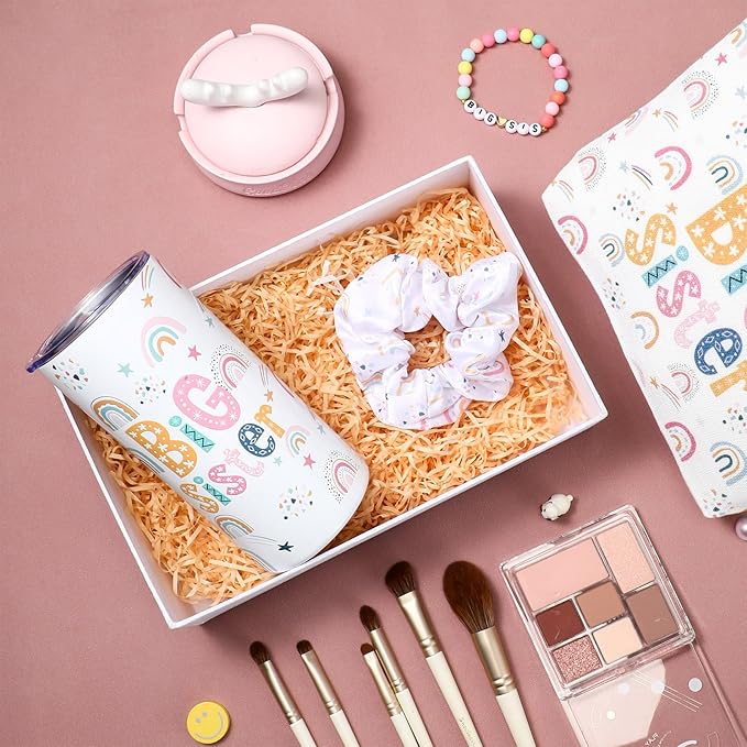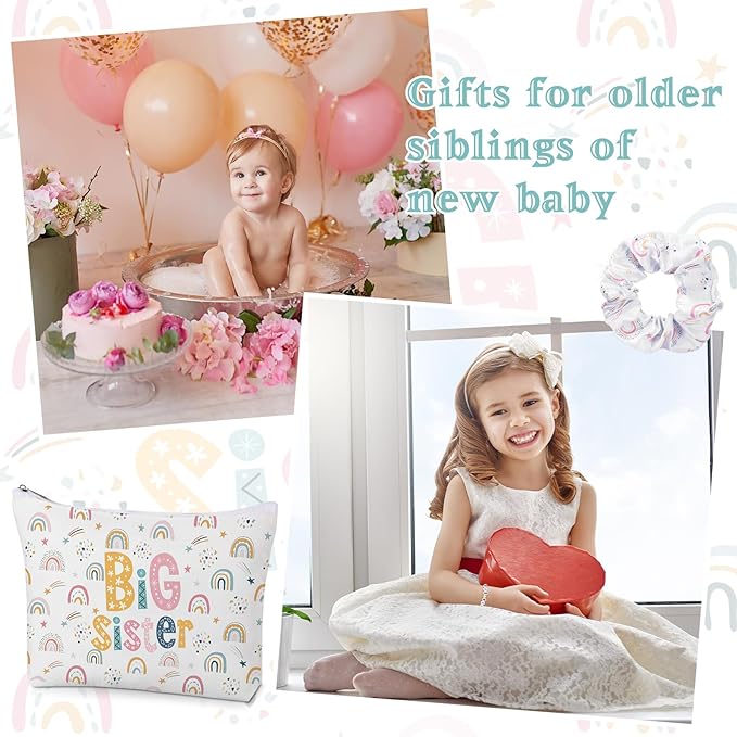 - Nice Combination: this package comes with 4 pieces set of big sister gifts, including 1 piece of tumbler cup, 1 piece of scrunchie, 1 piece of makeup bag and 1 piece of bracelet, this combination is nice to meet your daily usage and replacement needs