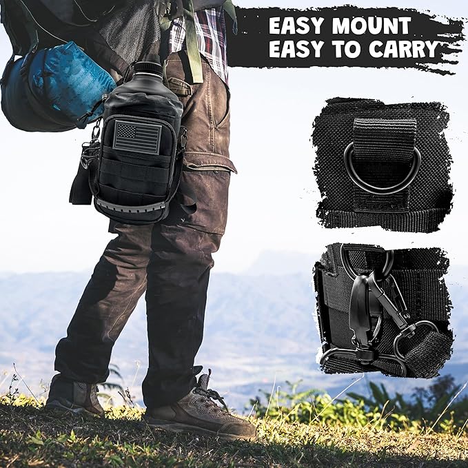 - TACTICAL BAG FOR EASY CARRYING: Bottle holder includes removable shoulder strap and removable rubberized handle; Water resistant dustproof bag has MOLLE webbing attachments and a big pocket for a phone, hidden mesh pocket for money, cards, and keys