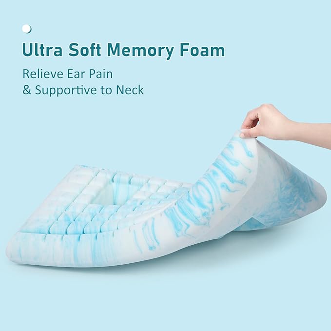 HAVARGO Ear Pillows with Holes for Ear Pain, Ear Piercing Pillow for Side Sleeping, Cooling Memory Foam Pillow for Pierced Ears Side Sleepers (SofterVersion)