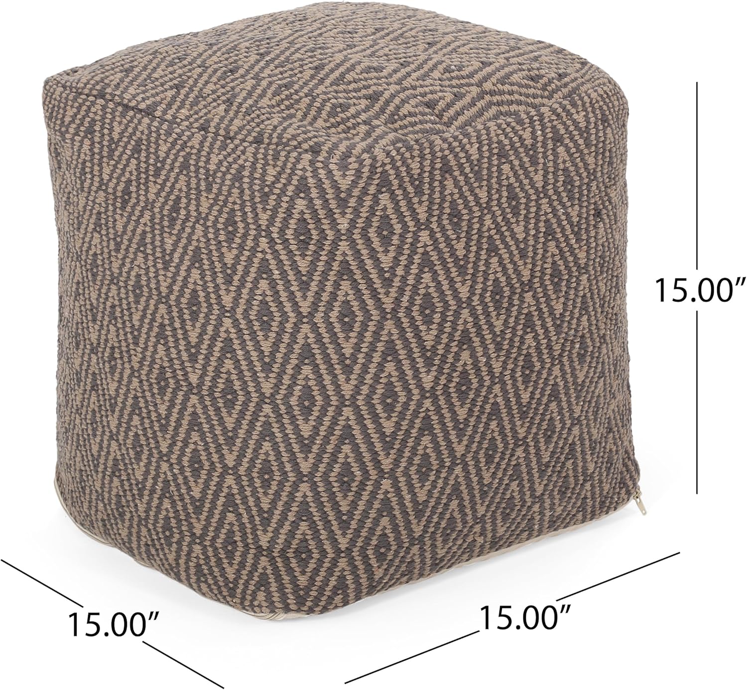 GDFStudio Boho Handmade Fabric Cube Pouf Ottoman Foot Stool - Bean Bag Floor Chair - Foot Rest Couch for Living Room Bedroom,Dark Gray and Brown,15"" x 15"" x 15"", Sovereig,brown Beige Yellow