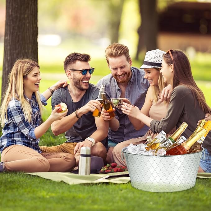 - 【LARGER SIZE】- The larger size of the galvanized tub allows for greater capacity, making it perfect for large gatherings and events. Whether you're hosting a backyard BBQ or a party with friends, the ice buckets for parties can hold enough drinks to keep everyone satisfied.