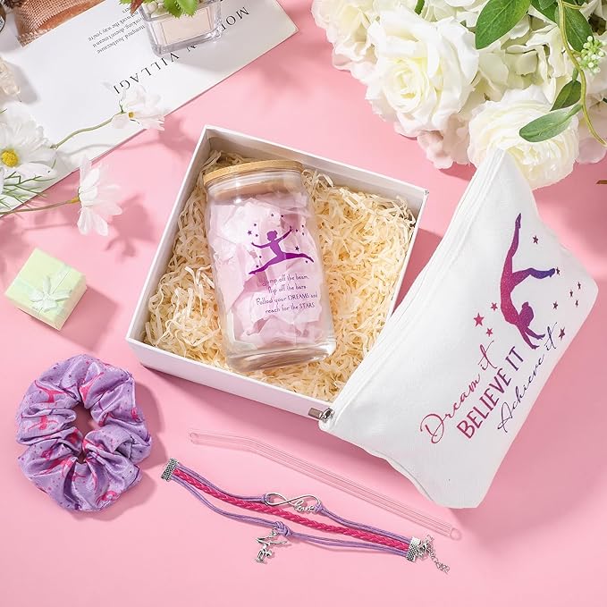 - Gymnastics Party Favors: this package is suitable for gymnastics fans, which includes a reliable glass water bottle, practical makeup bag, a bracelet, and a cute scrunchy; Show your support for the sport and share your love for gymnastics with others