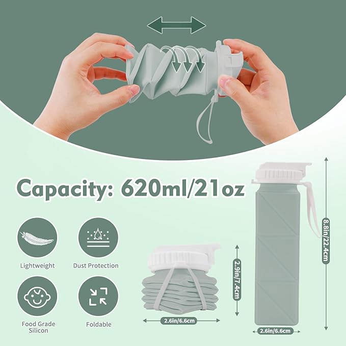 - SPACE-SAVING DESIGN: The collapsible feature allows the bottle to fold down to a fraction of its size, making it easy to store and carry in bags, backpacks, or even pockets.