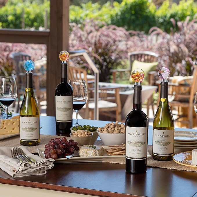 - 【PRODUCT FEATURES】Vcozar novelty murano glass bottle stoppers are made of clear glass with galaxy pattern and anti-rust stainless steel. this wine bottle stopper can seal wine, champagne, beverages, soda water, oil and vinegar. Keep the beverage or liquid in the bottle fresh and not spill out.