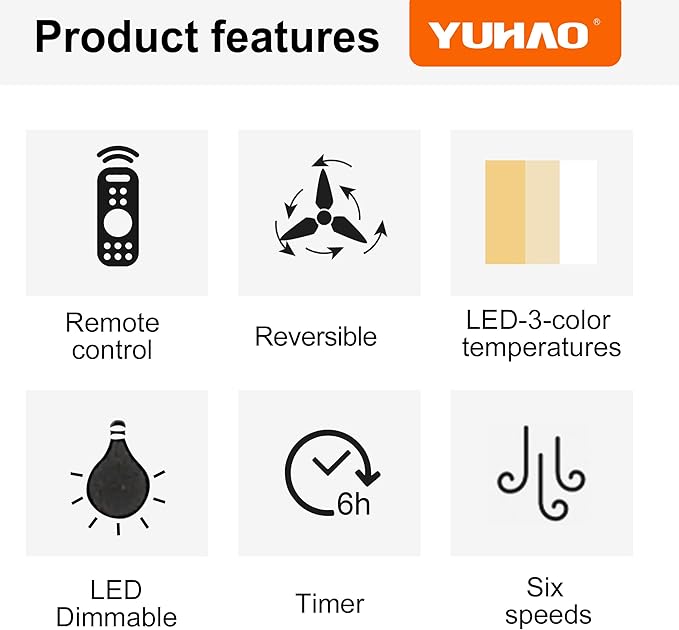 - Customizable Light : This ceiling fan comes with 3 light color changing technology, warm white, nature white and cool white, which are very convenient to control with the remote control.
