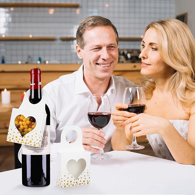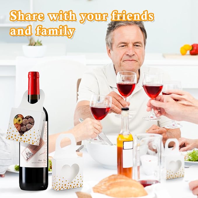 - 【Heart-Shape Clear Window】The hanging wine bottle boxes are designed with a clear window, you can clearly see the things inside, simple and elegant display of your delicious baked goods or creative gifts, etc. The wine gift box expresses your love, your family and friends will be pleasantly surprised by these gifts.
