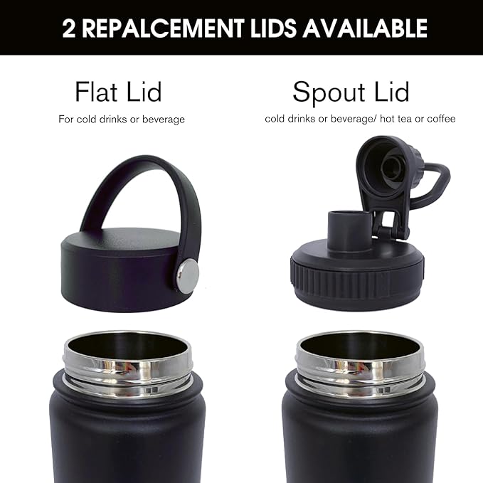 - 【Spout Lid & Flat Lid】 This water bottle comes with 2 lids: an innovative leak-proof spout lid and a newly improved Flat lid that has been enhanced for better flow. Easily fill your water bottle with ice and clean it through the wide mouth opening. Both allow easy one-handed or hands free sipping, they are designed for you to drink anytime, anywhere.