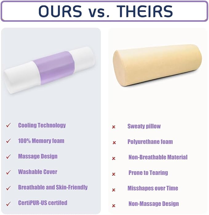 - Cool & Breathable Cover: Created with a cool touch and breathable fabric, the removable outer cover of this neck roll pillow is delicate and cooling, ensuring a comfortable sleeping experience.