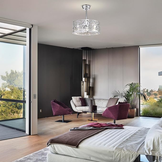 - Small Size: Design of caged ceiling fan with 5 small blades take up less space. Perfectly for small to medium space with low profile ceiling.