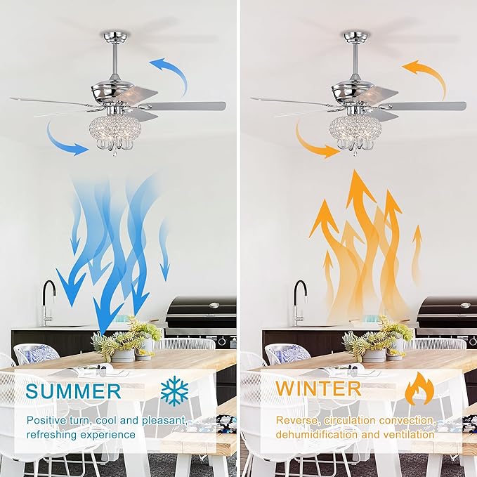 - Year-Round Use: It improves air circulation in winter and summer. In summer, this ceiling fan can optimize airflow to improve comfort. In winter, change direction and evenly distribute warm air at low speeds.