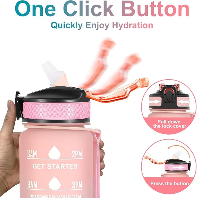 - Humanized Design: The lid adopts a pop-up design, which can be quickly opened with one hand, and is equipped with a secure lock to prevent dust and leakage; The bottle body is made of frosted material, which helps you prevent slipping during use; The water bottle come with a detachable straw, it can prevented overflow when drinking water; The wide mouth ensures you to add ice and fruits to replenish enough moisture.