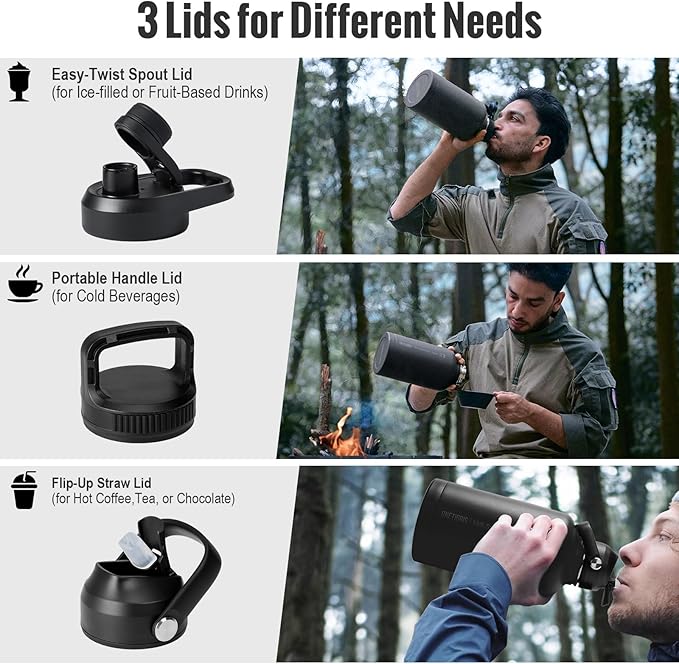 - 3 Interchangeable Lids:The water jug includes 3 interchangeable lids, catering to different lifestyle scenarios and beverage preferences. This thoughtful design offers convenience and flexibility, whether you need a lid for everyday use, quick sips, or savoring your drink. Our sports water bottle effortlessly adapts to your needs.