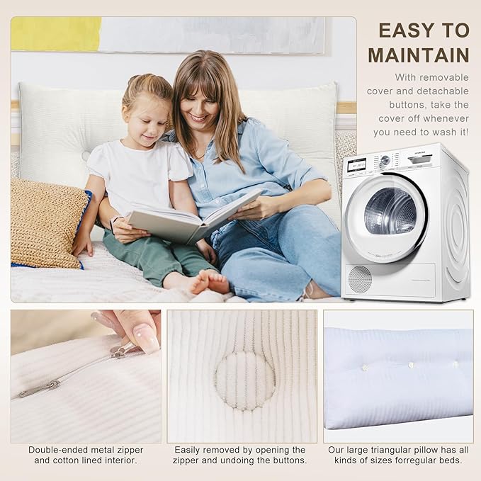 - Superior Quality for Enduring Comfort: Constructed with meticulous attention to detail, the breathable cover and high-resilience polyester fiberfill are engineered for durability. This headboard wedge pillow queen promises to maintain its inviting shape and support, offering you a sanctuary of comfort night after night.
