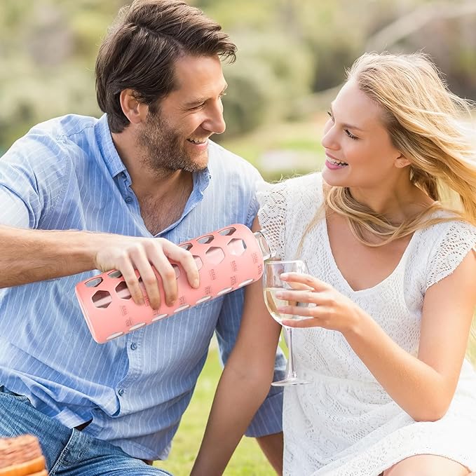 - COLD DRINK:Waterbottle made of premuim borosilicate glass which is sturdy and thermal resistance. It can withstand high and low temperatures without shattering or cracking, which makes the glass waterbottle suitable for both hot and cold drinks.