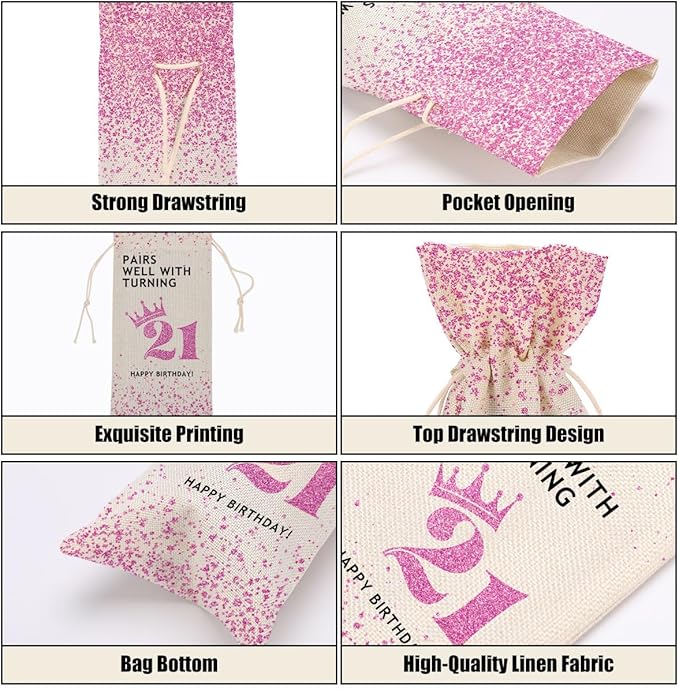 21st Birthday Wine Bag 21st Birthday Decorations 21st Birthday Party Favors Gift for 21 Year Old Male Coworkers Daughter Friend Him Her Anniversary Wine Bags