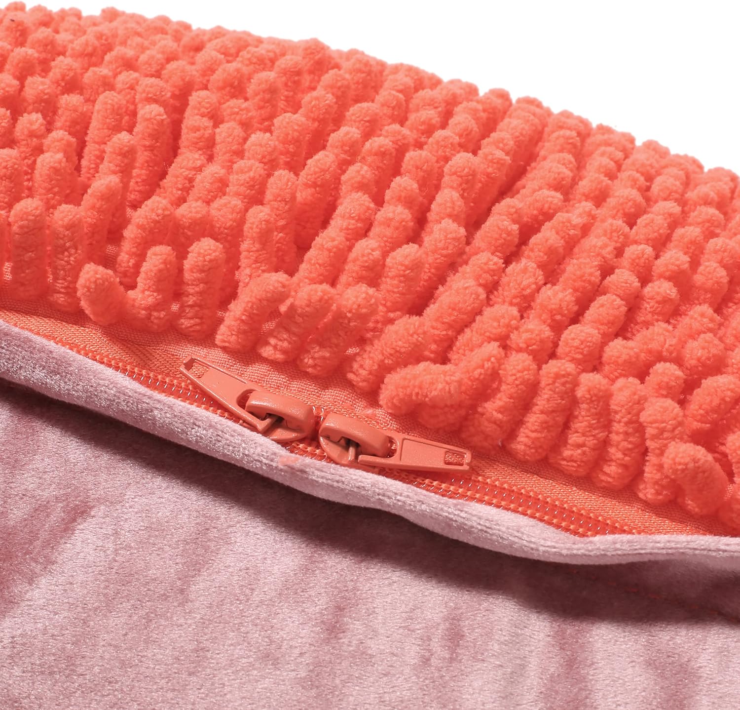 GDFStudio Modern Microfiber Chenille Cube Pouf Ottoman Foot Stool - Bean Bag Floor Chair - Foot Rest Couch for Living Room Bedroom,Coral,16"" x 16"" x 16"", Statha,coral, 314105N