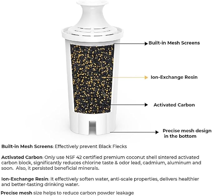 - Long Lifespan - Tested by NSF/ANSI 42 Standard, this pitcher water filter replacement has optimal performance and a long lifespan for up to 40 gallons (Based on NSF Certified), which may vary based on local water conditions. It will provide you with great-tasting purified water and reduce plastic waste.