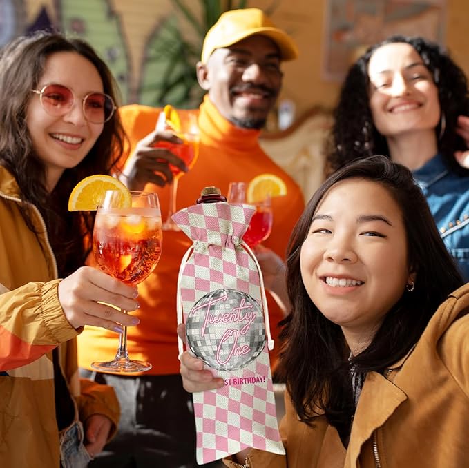21st Birthday Gifts Burlap Wine Bags Gift for Woman Friend Bestie BFF, Reusable Wine Gift Bags with Drawstrings for Birthday Party Decoration Congratulation Thanksgiving Christmas Home Storage - 10
