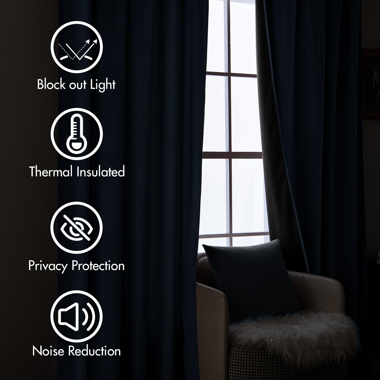- FUNCTION: Craft from thick velvet, curtains can block 80% of the sunlight. Also, these drapes can keep heat down in summer or keep cold out in winter to achieve smart energy saving. And these panels can provide privacy, reduce noise, which help to create a quiet sleeping environment.