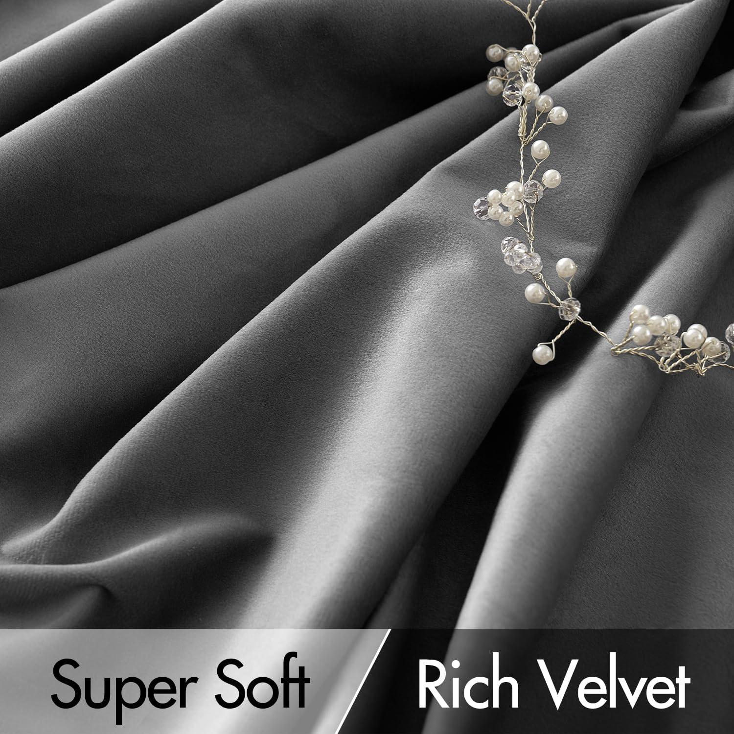 MIULEE Grey Velvet Curtains 90 inches Long 2 Panels - Luxury Pinch Pleated Room Darkening Window Drapes for Bedroom Living Room Thermal Insulated Super Soft Blackout, Back Tab Rod Pocket Gray