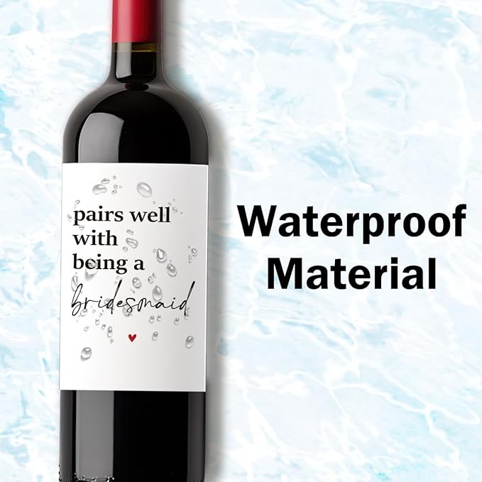 - 【Easy to Apply】Our bridesmaid labels are designed to be easy to use, just peel it off and stick it on your favorite wine bottle, and a unique bridesmaid gift is ready! It is waterproof, which means they will not fade or bleed, even if stored in the refrigerator.