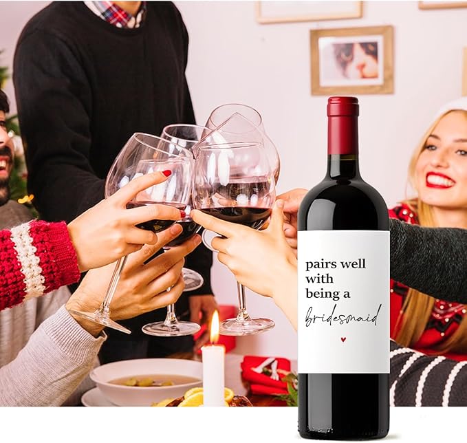 - 【Funny Bridesmaid Proposal Wine Labels】Make wedding more fun! Our bridesmaid wine label says "Pairs Well with Being a Bridesmaid", these unique wine labels are the perfect way to celebrate a successful wedding with funny sayings that everyone will love. Make memories last with these bridesmaid proposal wine bottle stickers.