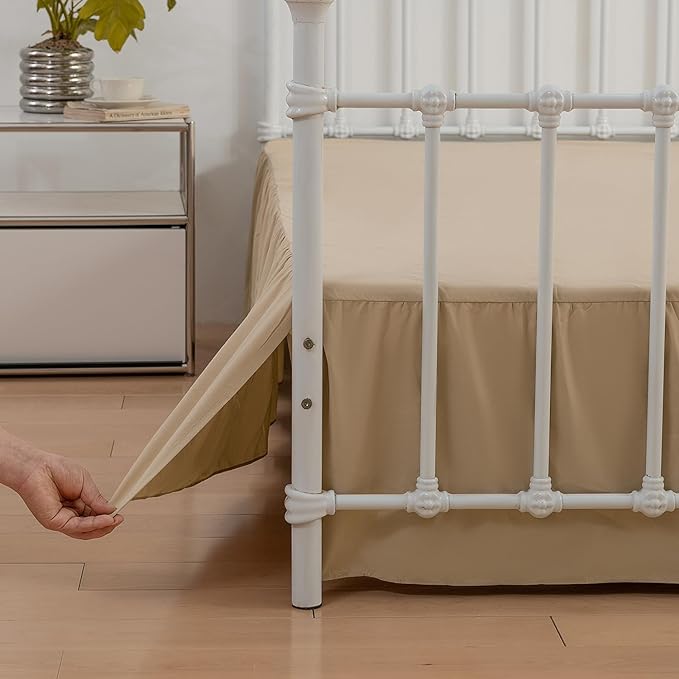 - 【Easy care】Our bed skirt is machine washable, wrinkle free and fade resistant, wash with like colors, cold gentle cycle, tumble dry low and light iron as needed