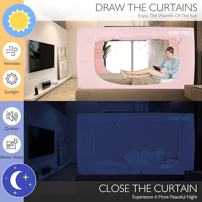 - BETTER SLEEPING EXPERIENCE:The full bed tent is made from a unique fabric that provides up to 70% blackout so you don't have to worry about waking up to the sun. Perfect for those seeking solitude, children craving adventure,or those who need a sensory-friendly space to create a more restful night's sleep.